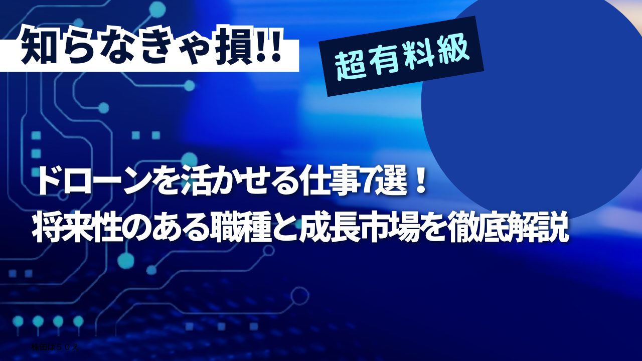 ドローン技術の進歩と普及に伴い、多くの産業でドローンを活用した新たな職種が生まれています。本記事では、ドローンを活かせる7つの仕事とその将来性について詳しく解説します。これからドローン業界への参入を検討している方や、キャリアチェンジを考えている方にとって、有益な情報となるでしょう。
